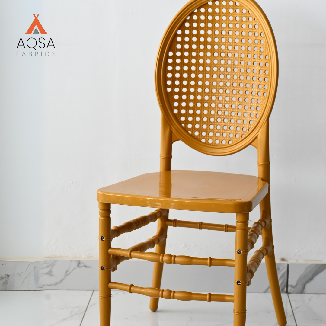 This High Quality Home Dining Chair is made with Acrylic, stylish round backside with checkered pattern, round straight legs, making it a stylish and durable option for any dining setting. perfect for weddings, events, and fine dining restaurants. Available in an elegant gold color.