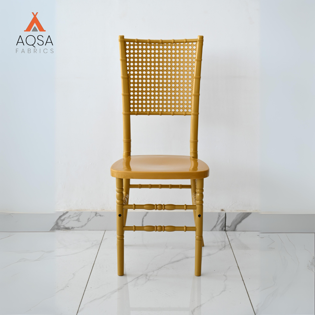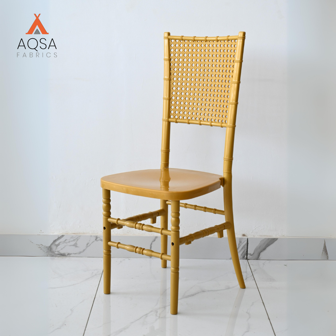 This High Quality Home Dining Chair is made with Acrylic, stylish rectangular backside with checkered pattern, round straight legs, making it a stylish and durable option for any dining setting. perfect for weddings, events, and fine dining restaurants. Available in an elegant gold color.