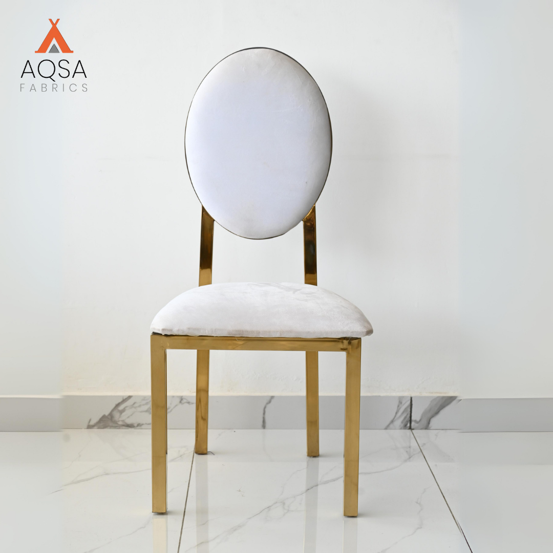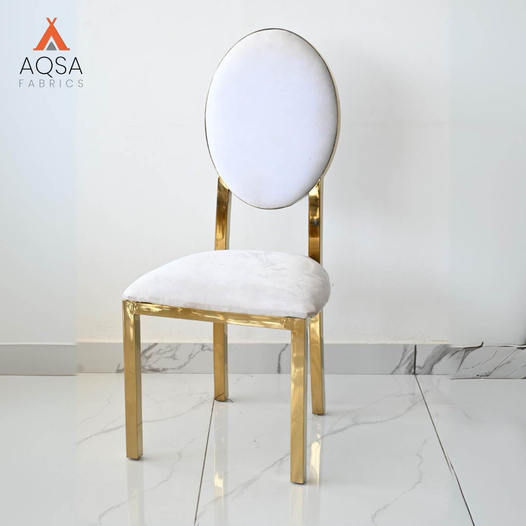 This High Quality Velvet Home Dining Chair is made with gold metal and stainless steel, with simple and round backside, square legs, making it a stylish and durable option for any dining setting. Its luxurious velvet material provides a comfortable seating experience, perfect for weddings, events, and fine dining restaurants. Available in an elegant white color.